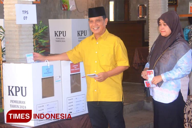 TIMES Halmahera/Calon Bupati Malang nomor urut 2, Gunawan HS, saat memberikan hak suara dalam pilkada 2024, di TPS 07, Desa Gondanglegi Wetan, Kabupaten Malang, Kamis 27/11/2024. (FOTO: Adhitya Hendra/TIMES Indonesia)